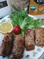 昨日作ったたまねぎスープ味肉じゃがあまり米粉を足して 形を整え易くまた崩れないようにしました!普通は 小麦粉つけ、溶き卵をくぐらせ、パン粉をまぶし揚げる料理ですw私は 形が整うとべっぴんはとむぎを粉状にしたのを全体にまぶし形を整え直し 玄米米油で揚げました すごい端折りの手抜きコロッケ🧆ですけど美味