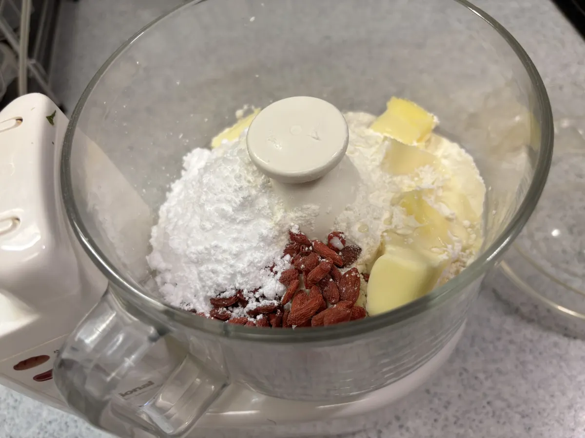 全ての材料をフードプロセッサーに入れて混ぜるだけで生地の完成です😊