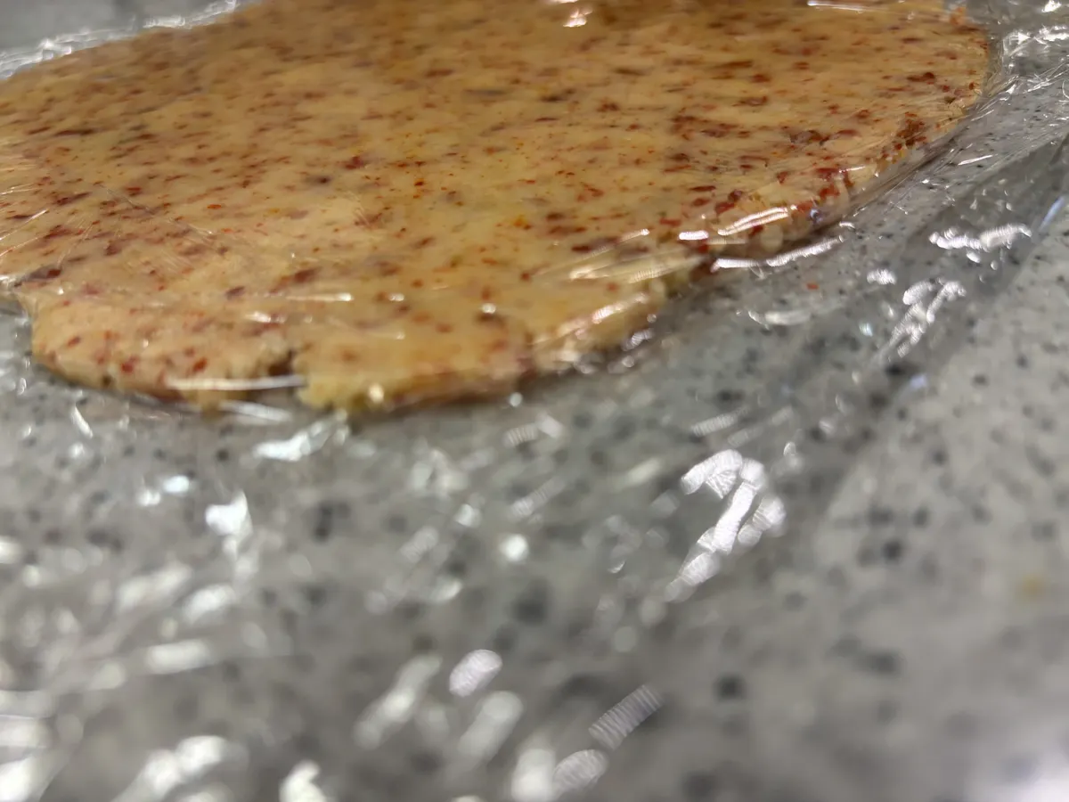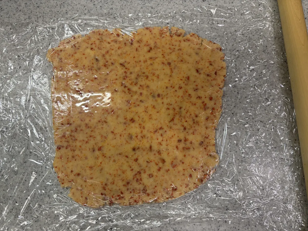 ④麵棒で3㎜の厚さに伸ばして 冷蔵庫で30分位休ませる
