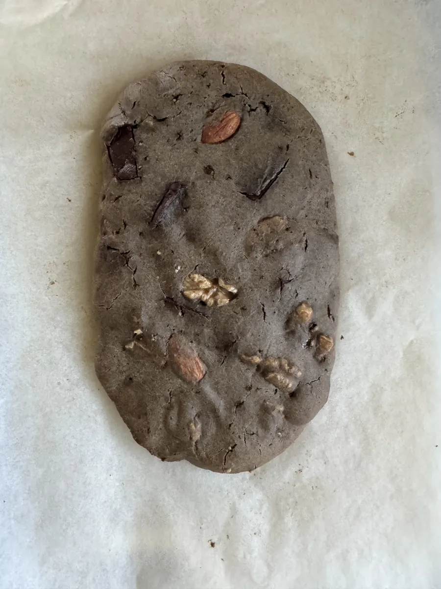 ②ナッツとチョコレート入れて混ぜ混ぜしたら楕円形の形にする