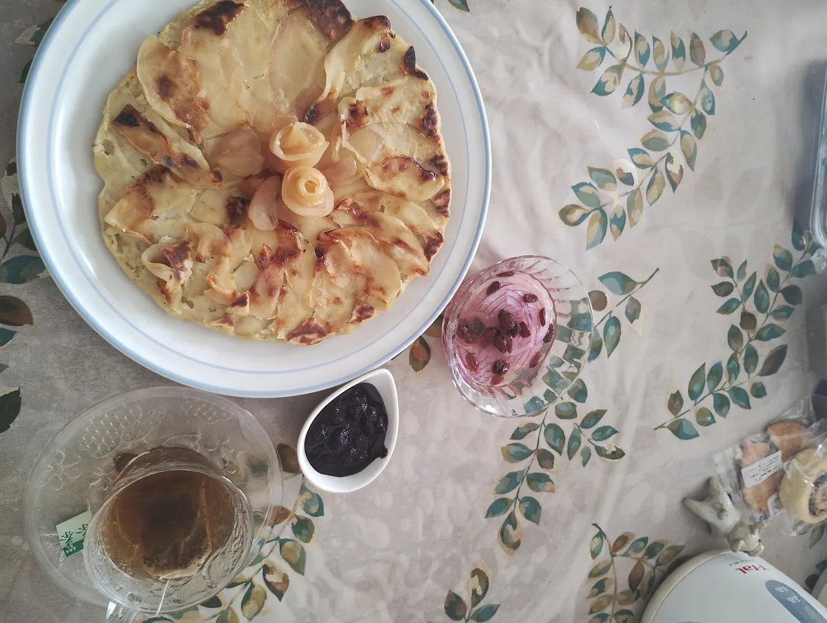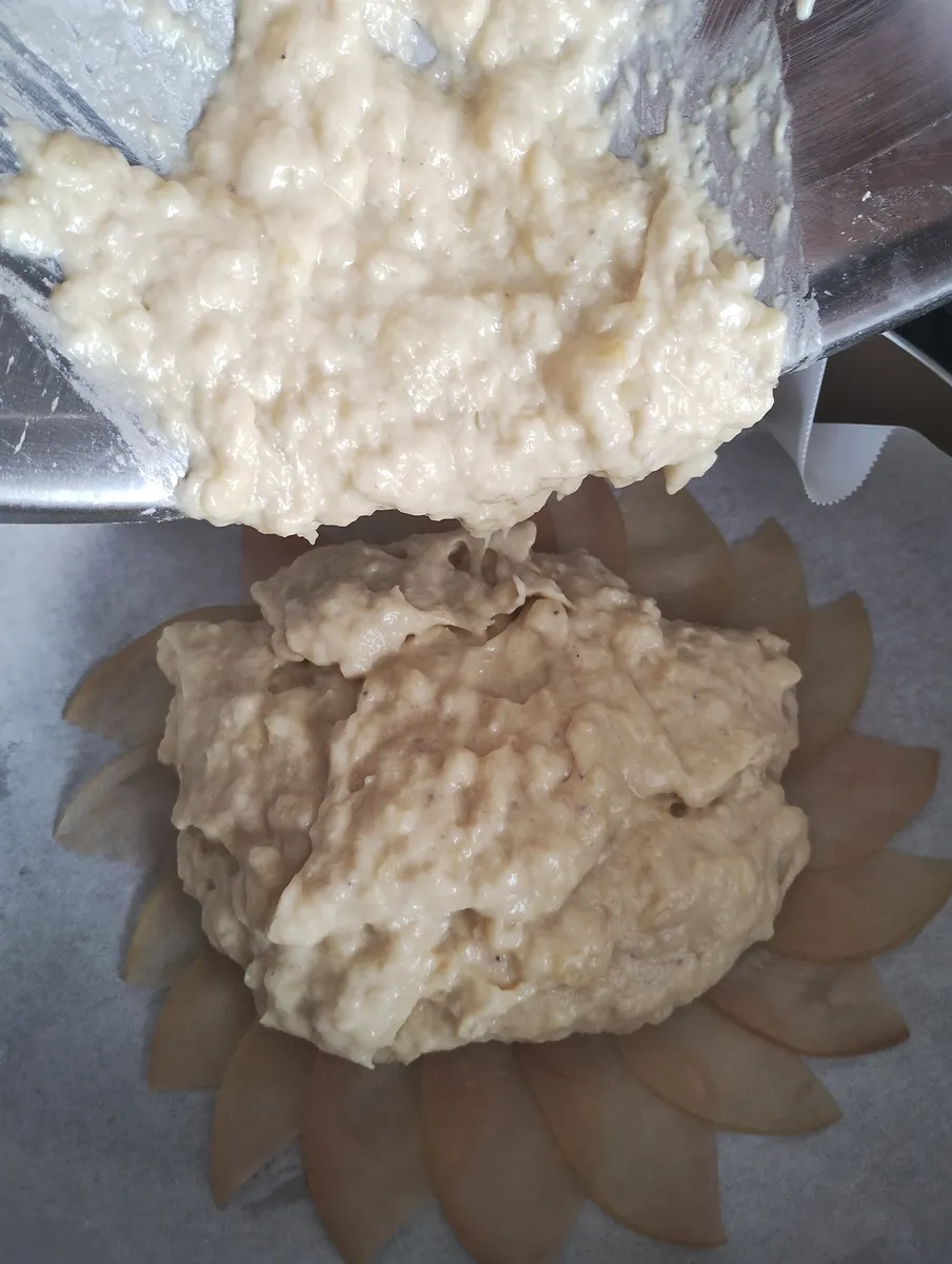 余りのリンゴコンポートを引いたため 念の為にクッキングーシート敷きました 普段は敷きませんのでご了承下さい😊