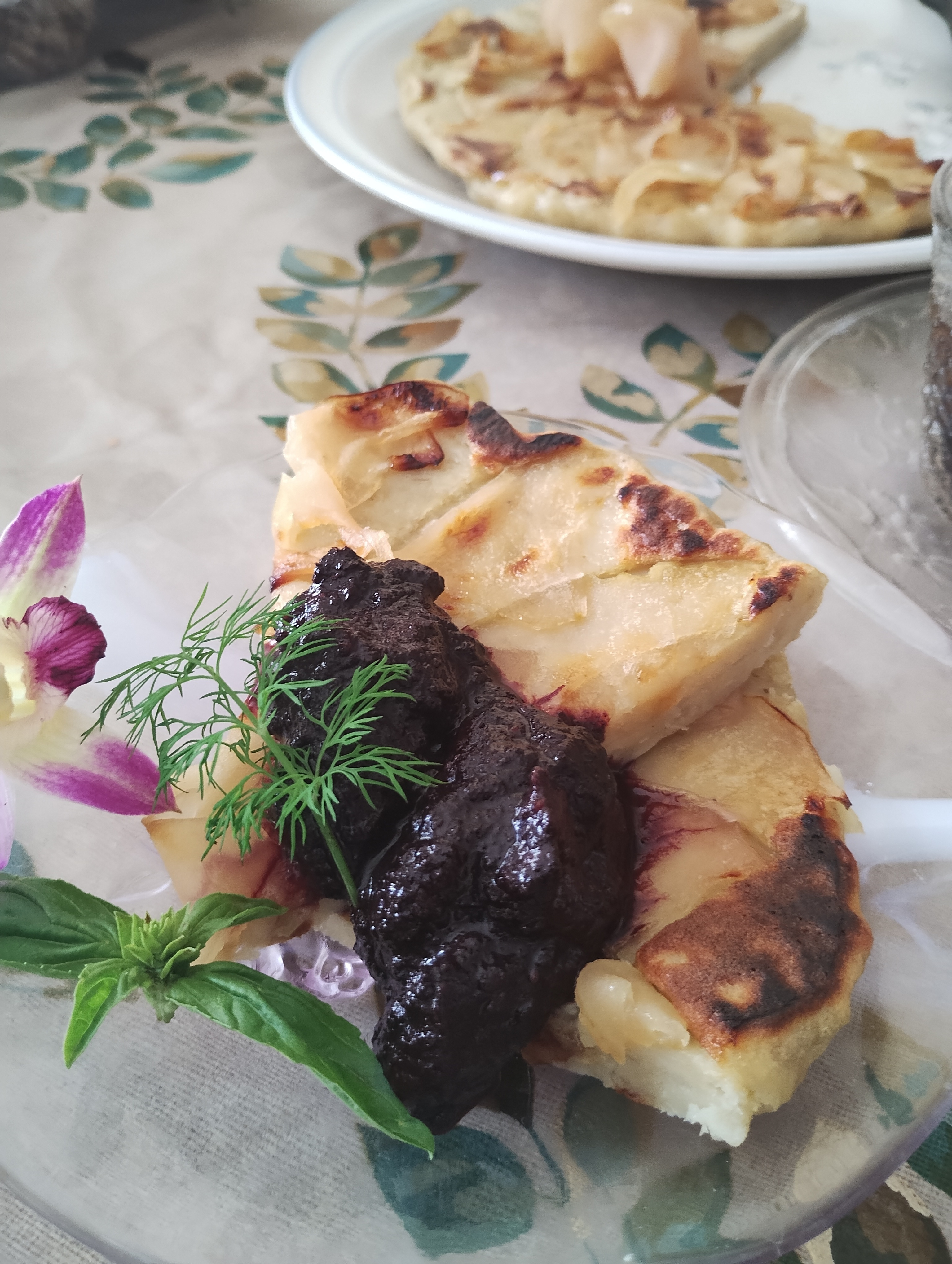 ソースカップに入れ バナナパンケーキに添え タンポポコーヒーお供に 朝食 お口さっぱりに 紫玉ねぎとしあわせシードクコの実の酢漬け ちょっこり!💜