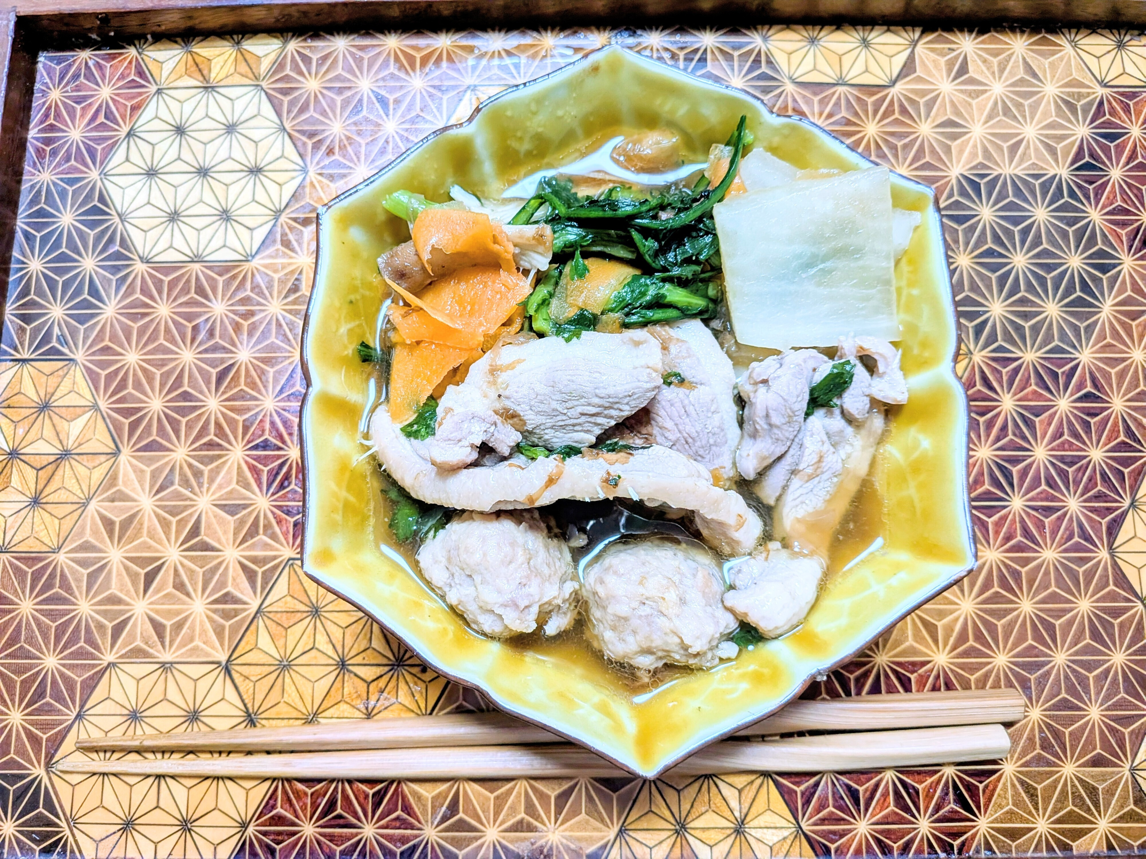 六角形のお皿が黄色でなんだか縁起が良さそうで素敵です✨