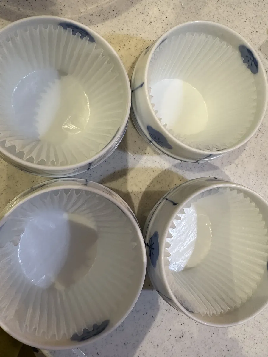 マフィンカップ薄くて安定が悪いので 湯呑みや小鉢などにセットしておく