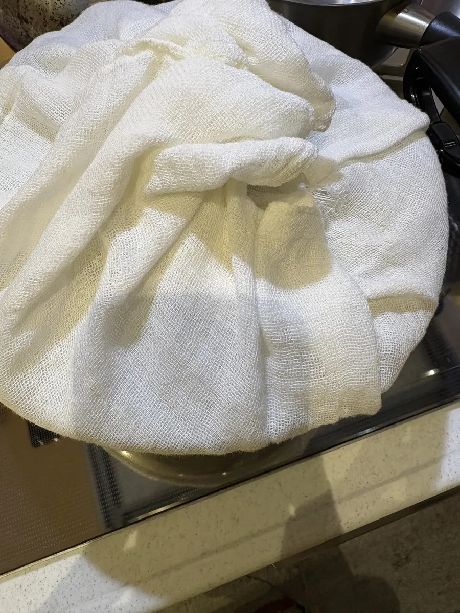 鍋の蓋に布巾をまとい 水滴が落ちないように準備しておく