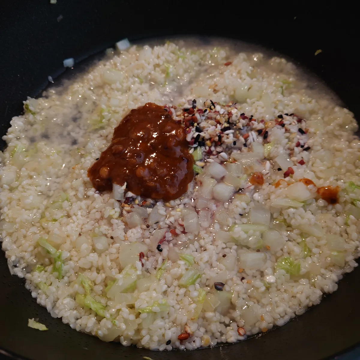 三十雑穀スープで簡単パエリア✨