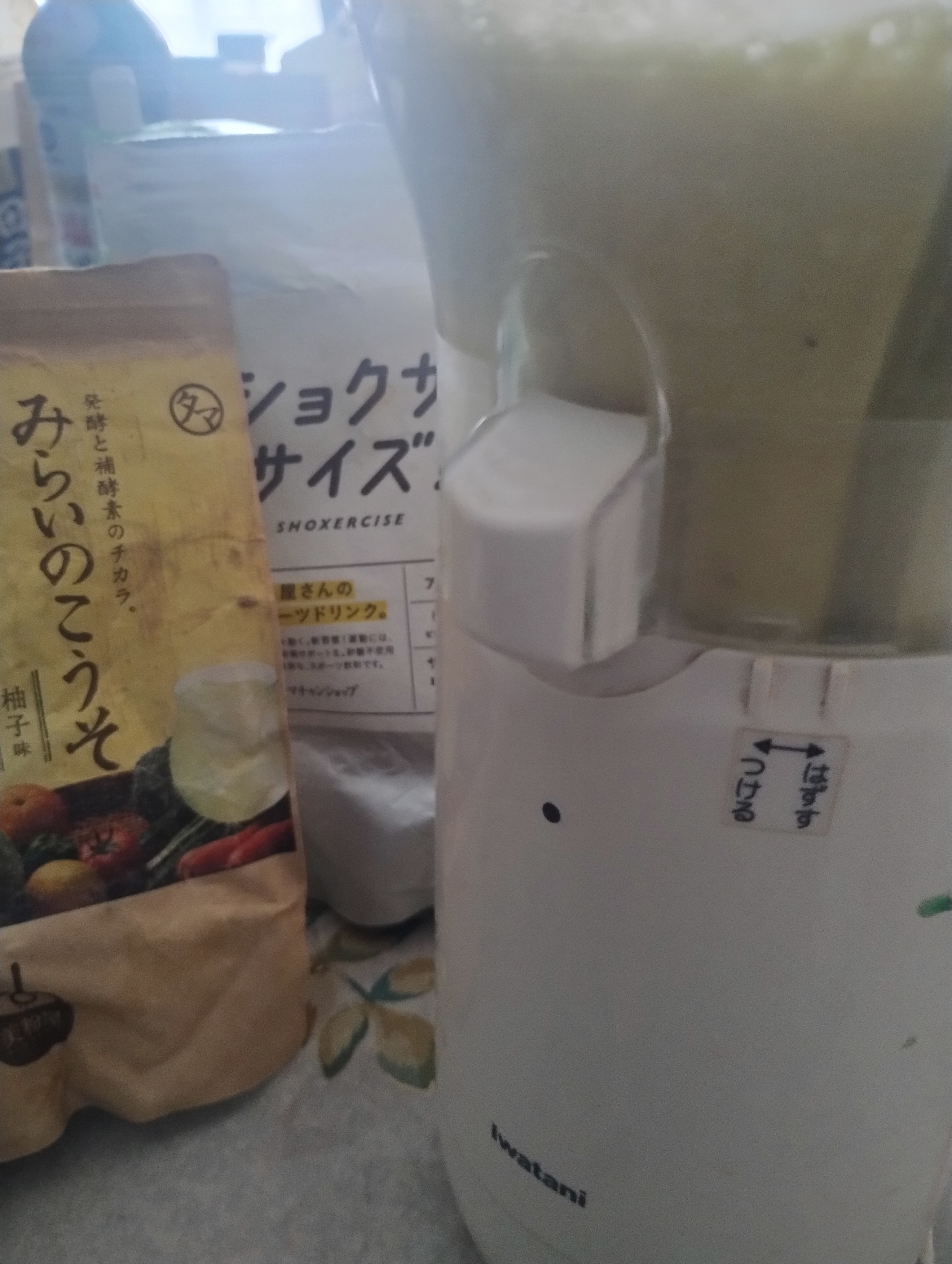 ①材料をもれなくジューサーミキサーに入れ スイッチONし 20秒待ちます