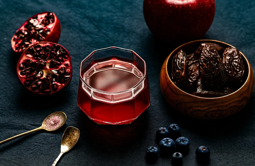 そして、ウコン・黒生姜・黒胡椒・黒酢・リンゴ酢などの自然由来の温活素材や、ザクロ・リンゴ・ビルベリー・サジー・アサイー・グレープフルーツ・インディアンデーツといった7種のフルーツエキスも凝縮しました🍇✨