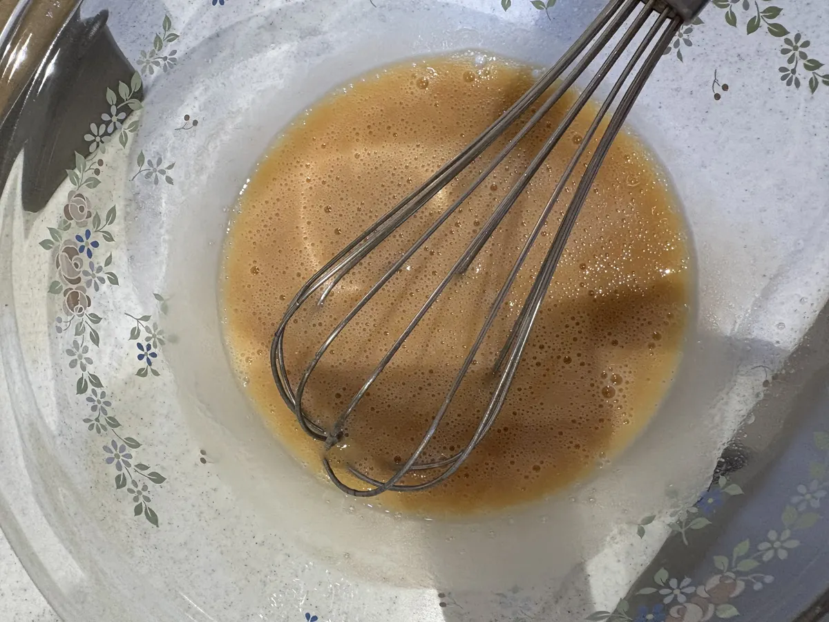 ④ボウルに卵をわりホイッパーでよく混ぜる