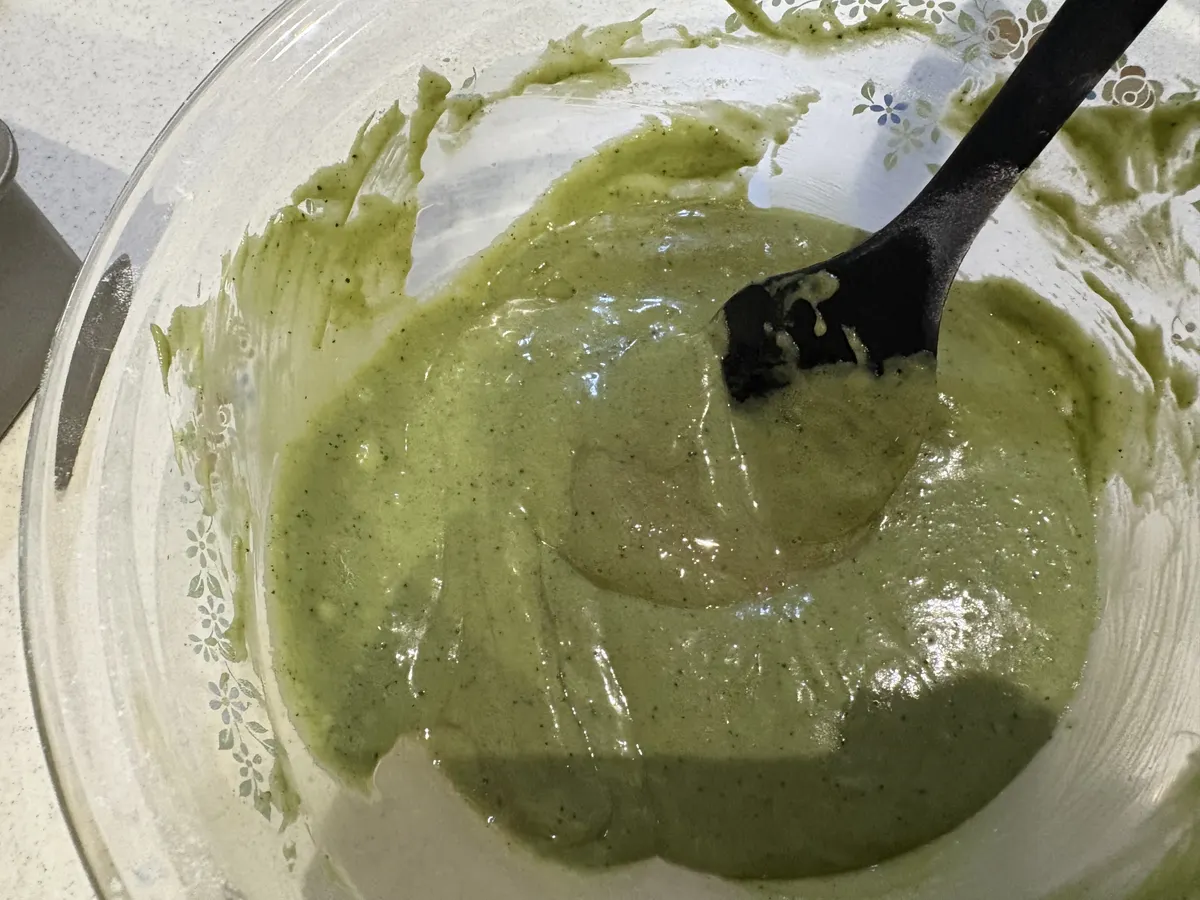 ⑤④に①を入れてシリコンヘラで粉っぽさがなくなるように混ぜる