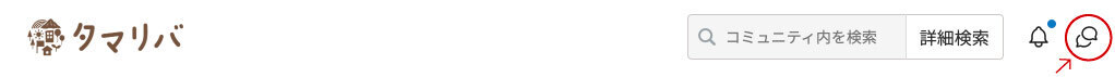 メッセージ機能は、画面右上のアイコンから確認できます。(赤丸で示した部分をご参照ください。👇)
