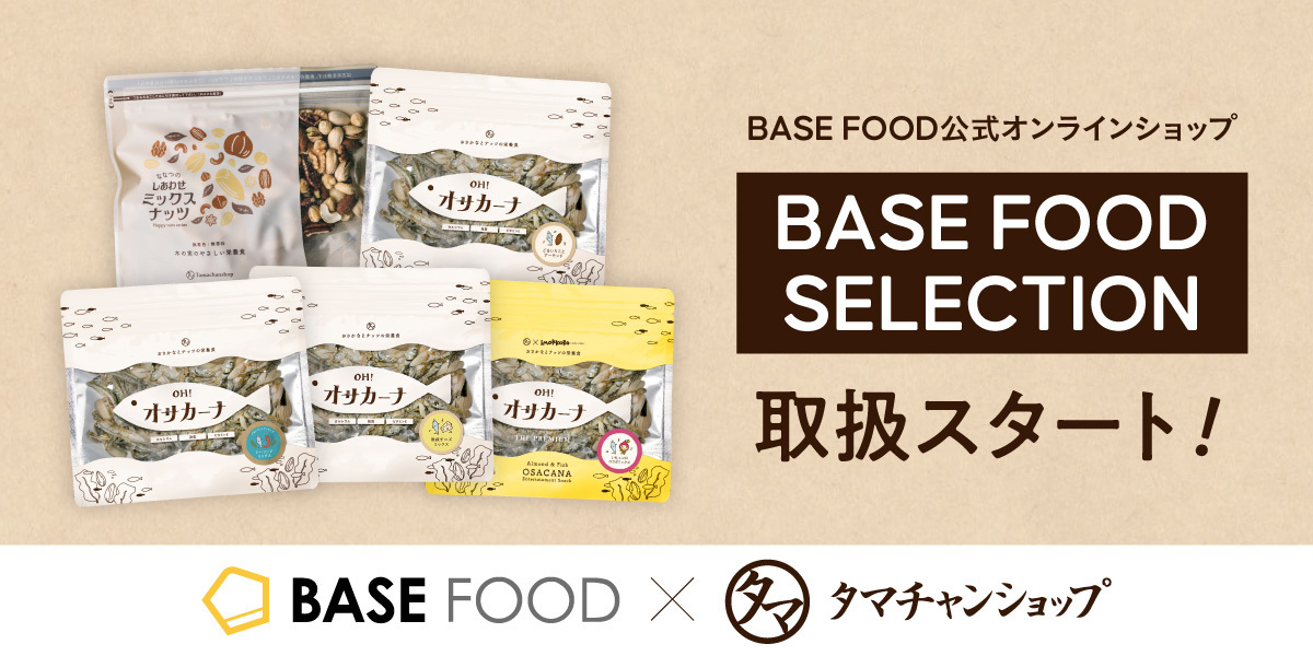 このたび、BASE FOODの展開する、継続コース会員向けにセレクトしたおすすめの商品を販売するサービス「BASE FOOD SELECTION(https://shop.basefood.co.jp/selected-items )」でタマチャンショップの商品が、販売されることになりました🎉