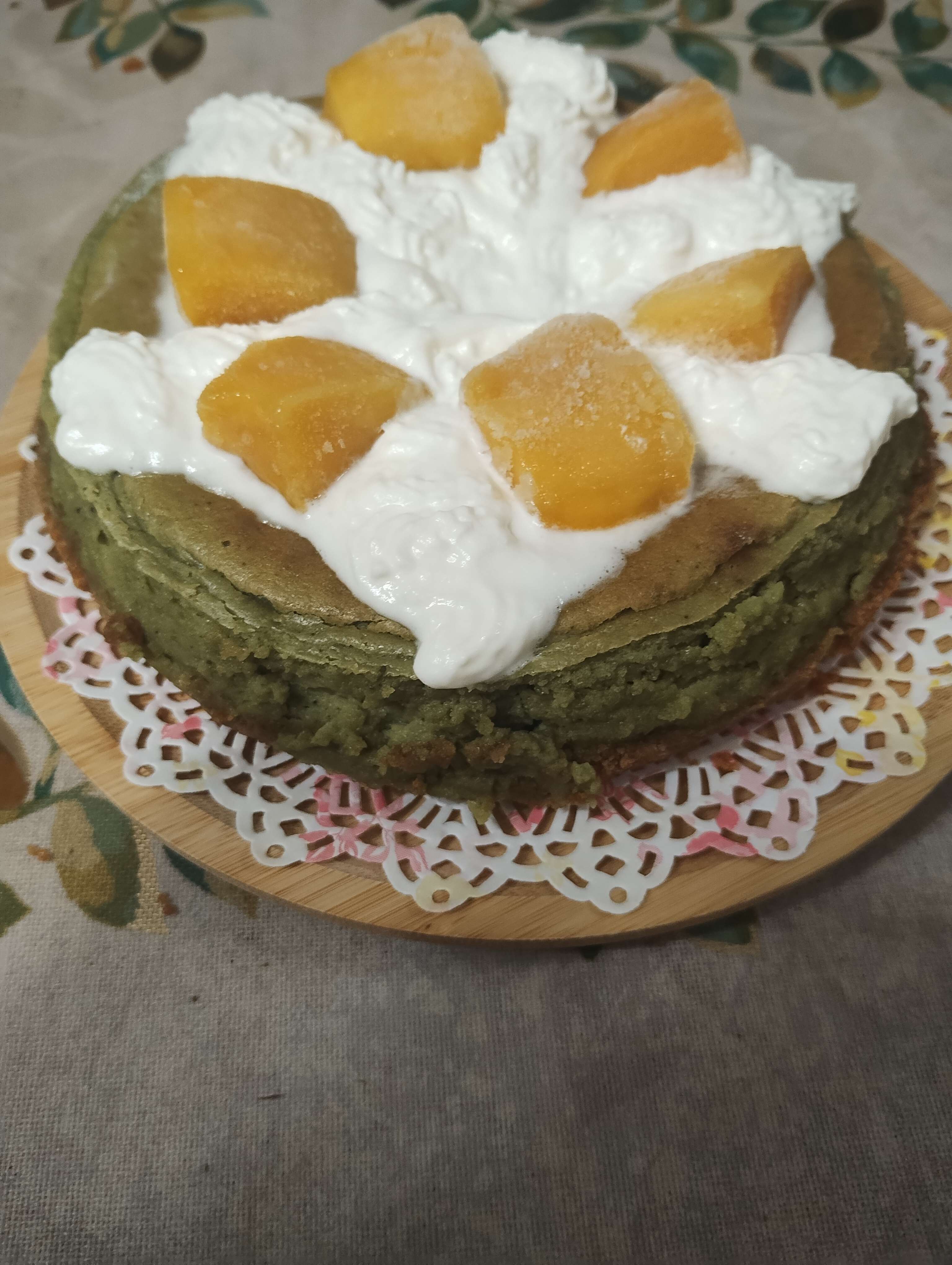 ※温かいケーキに 冷たい生クリームのせて 溶ける🫠当たり前なのに 頭疲れてると こんな失敗をします😂冷凍マンゴーをのせましたが 既に時遅しでした〜(笑)
