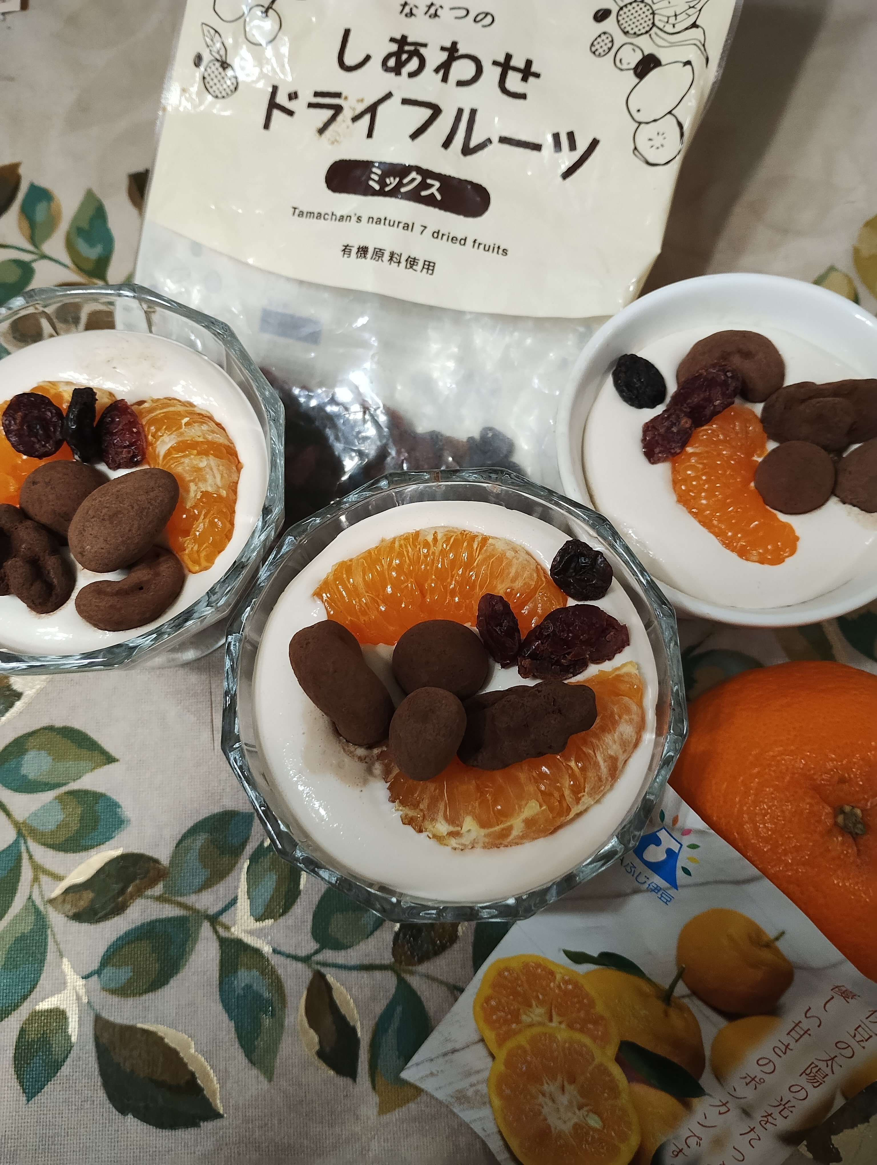 甘さ控えめなので ドライフルーツとパンナコッタを一緒に食べると 良いかなと思いました😊