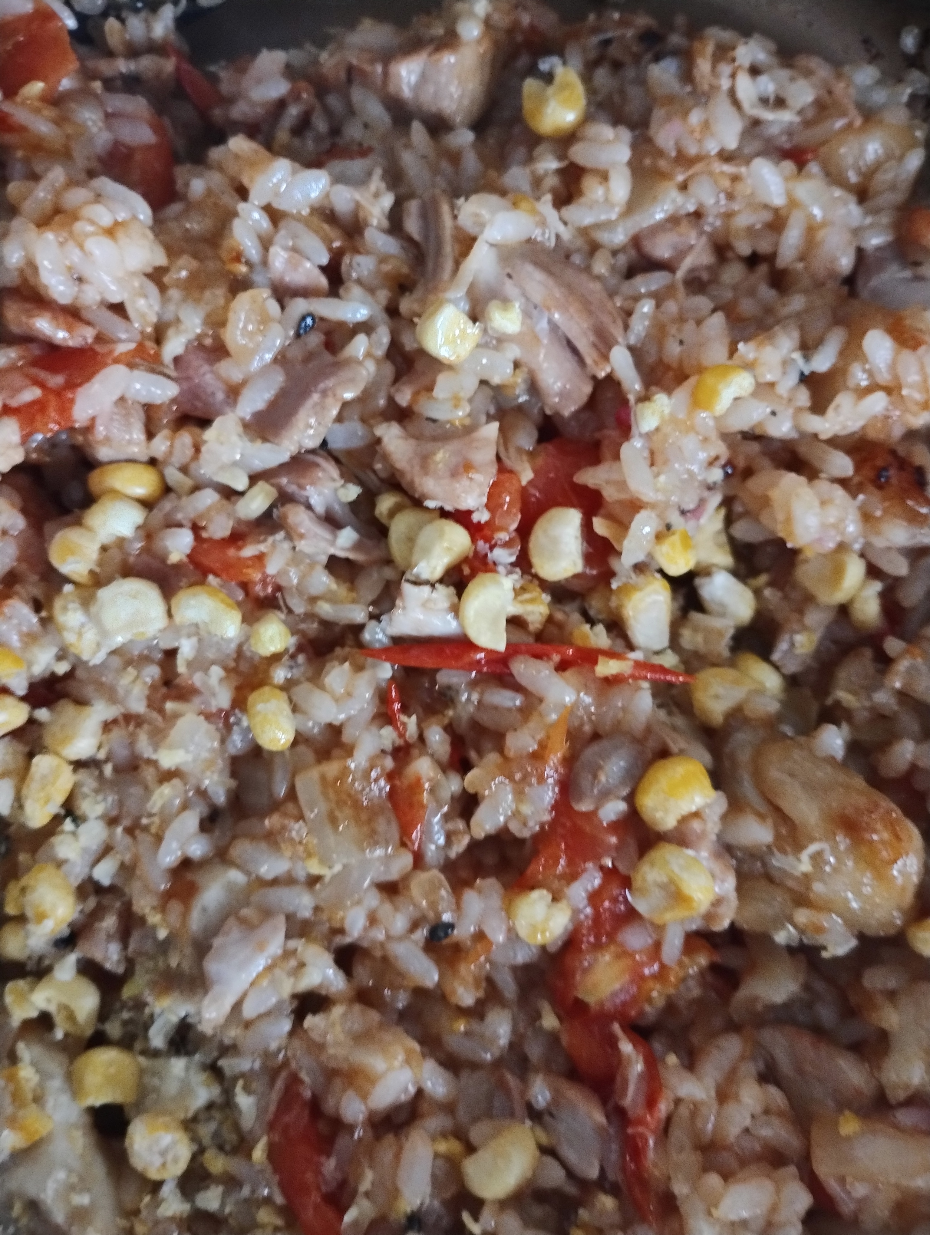 ②①に白米を入れて 絡むように炒め、モロコッチを入れて火を止める
