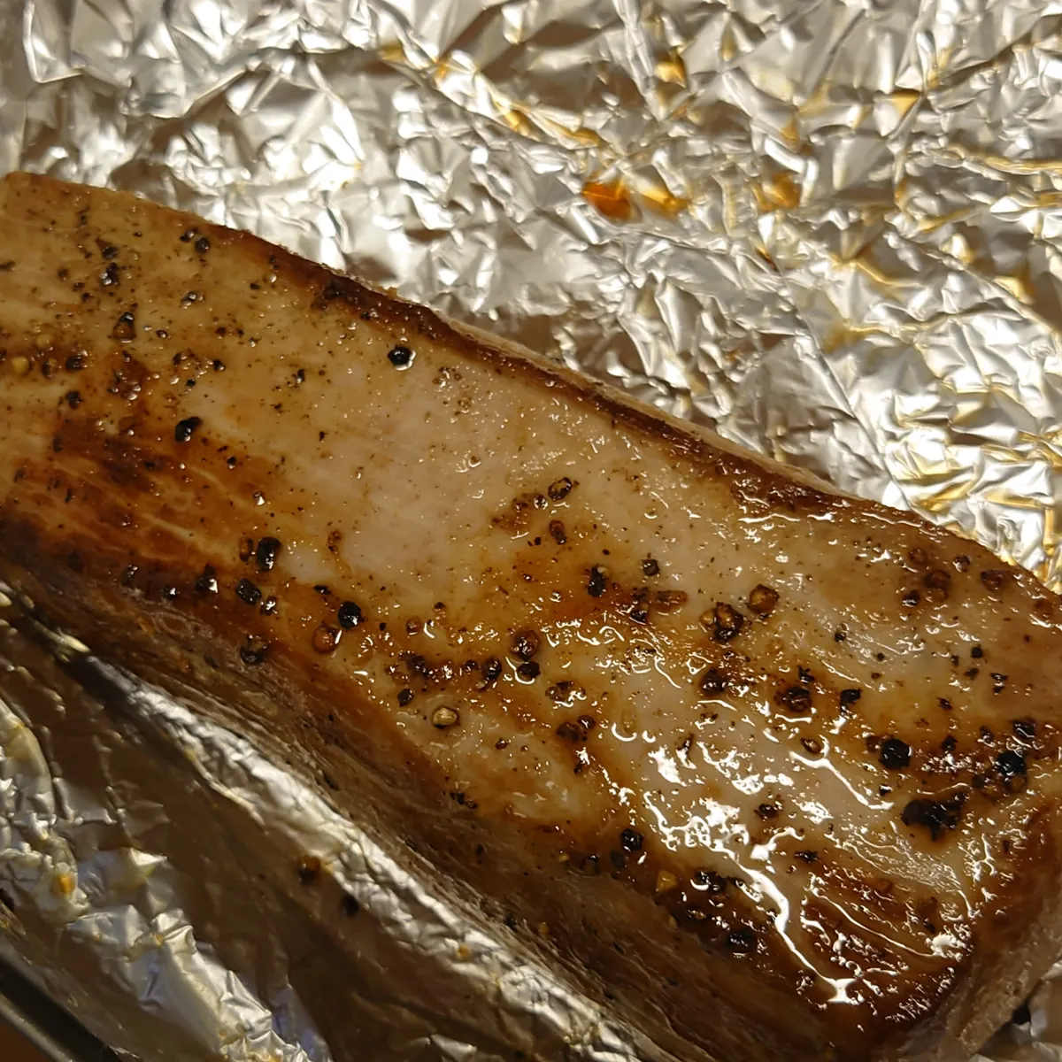 ③フライパンに薄く米油を塗り、肉の全面に焼き色をつける。アルミホイルで二重に包んで放置。