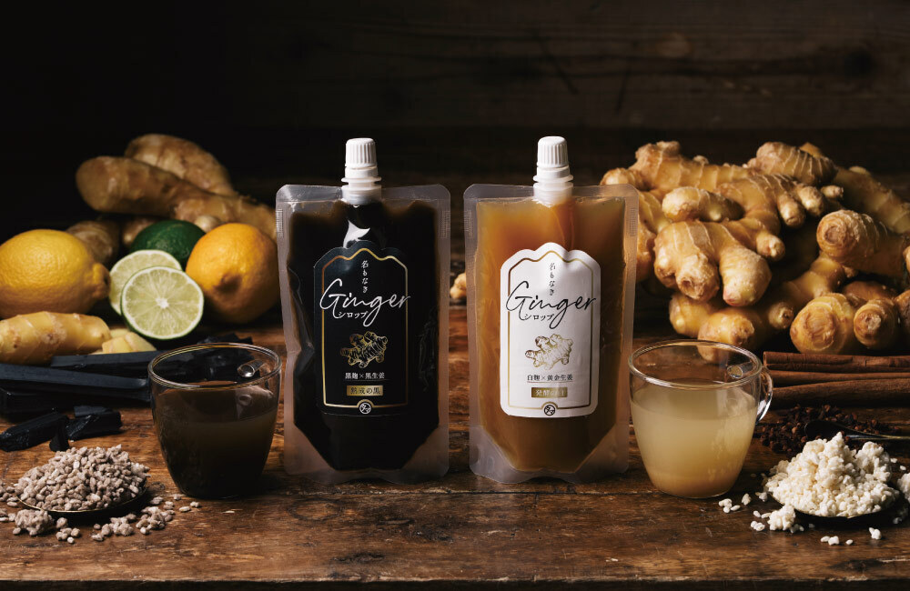 「熟成の黒」と「発酵の白」2つの生姜シロップをセット販売