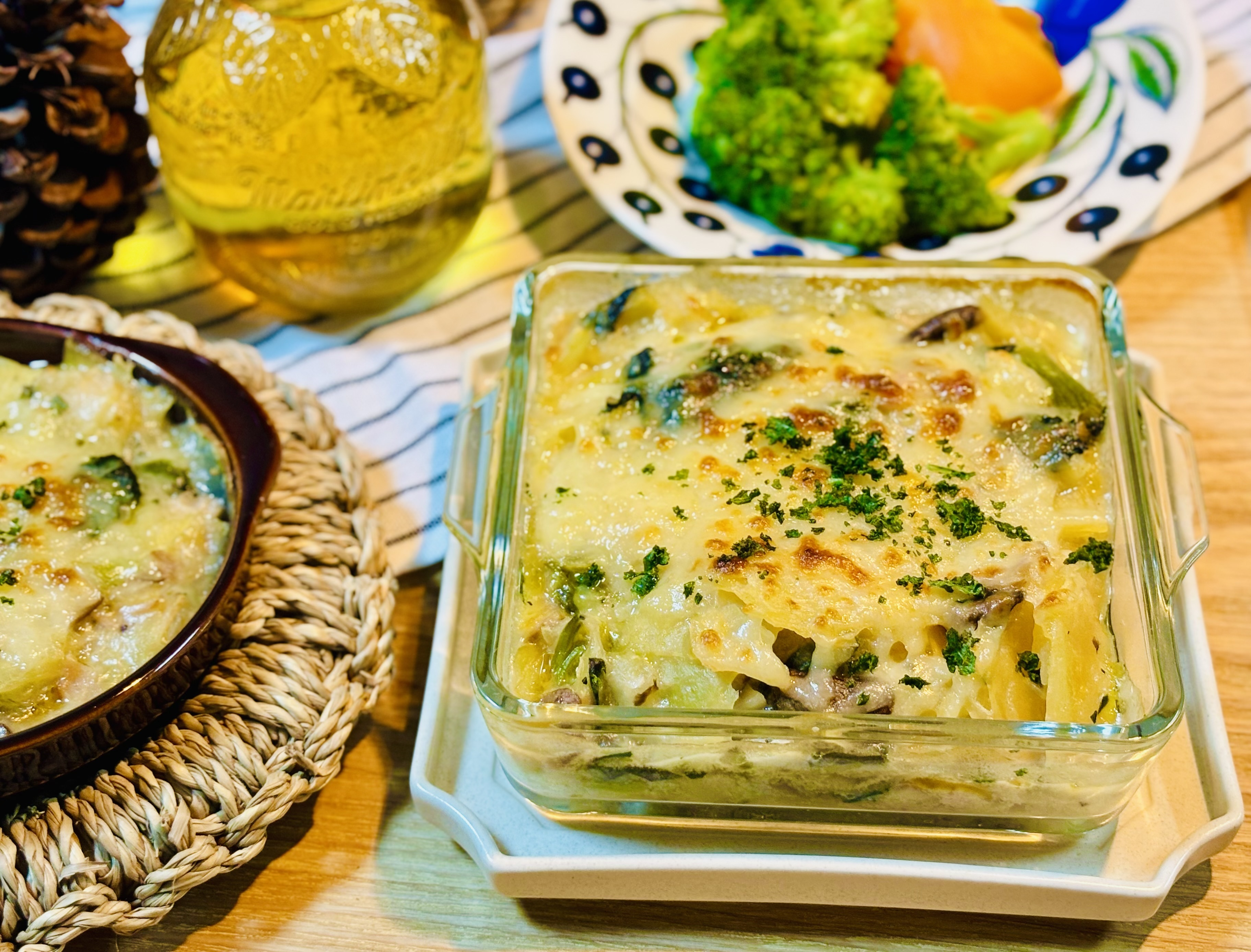 ホワイトソースを作らなくてもバターを入れなくてもあっさりめの満足グラタンになります