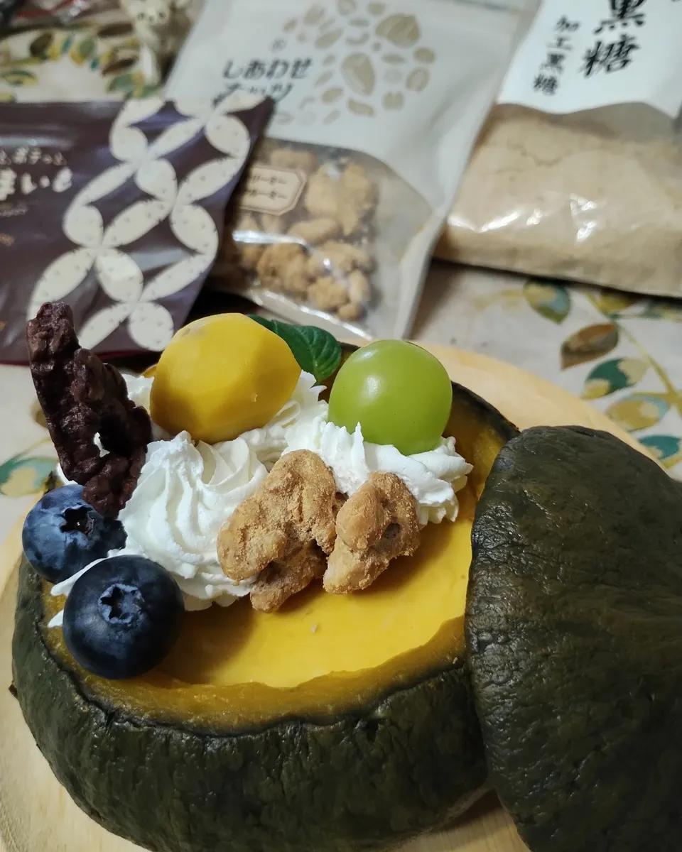 かぼちゃ 丸ごと器にしたプリン 最高ですね🎃