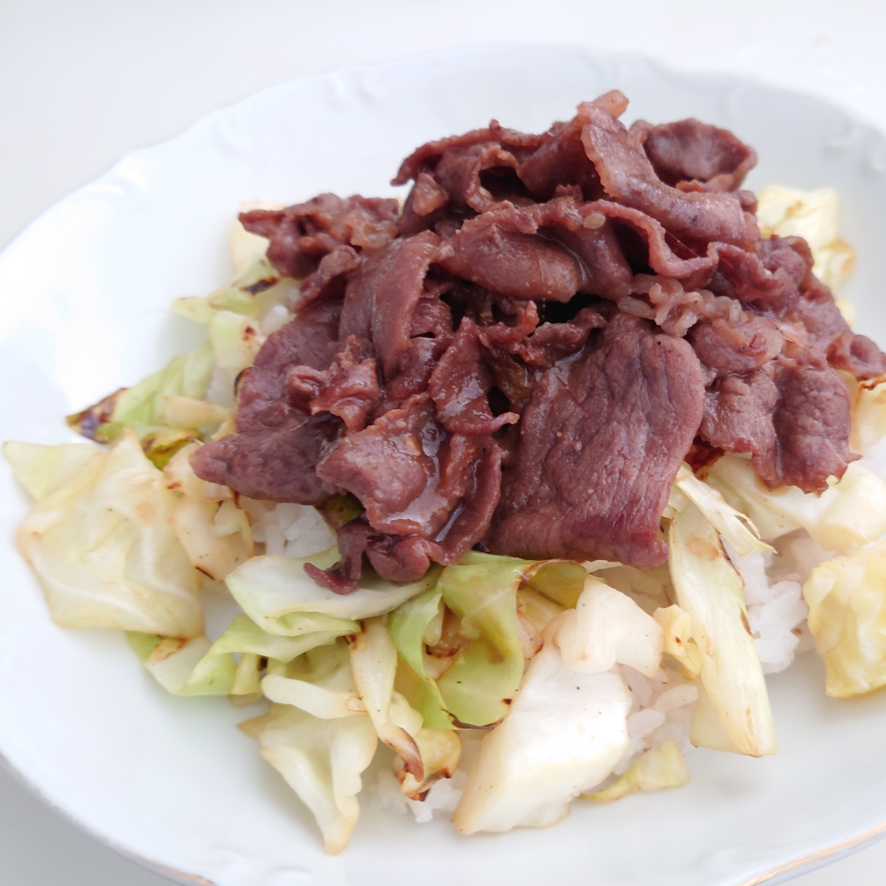 春キャベツの美味しい季節ですね。炒めると甘さがましてとっても美味しいですよね😋三十雑穀ごはんの上に焼いて塩胡椒した春キャベツ、焼き肉をのせました☺️