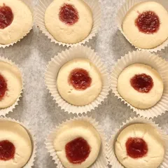 🇸🇪伝統焼き菓子ハッロングロットル 🇸🇪スウェーデンの伝統焼き菓子、ラズベリーの洞窟という意味のハッロングロットル✨ 短い夏に収穫した様々なベリーで作ったジャムを乗せて焼いただけのシンプルで素朴な味わいのクッキーです🫐 コーヒーブレイクを意味する「フィーカ」に登場するお菓子の代表選手ですが、本当にカンタンに作れます