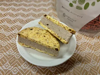 クッキーサンドアイス クッキーサンドアイス🍪🍨夏よりいくらか涼しくなった秋に食べたくなりませんか😄私だけでしょうか!?バターは冷蔵庫から出したもの直でOKです!全ての材料をフードプロセッサーに入れて混ぜるだけで生地の完成です😊 小さいクッキーで挟んで先ずは試食タイム🤣薄めに焼いたらアイスとも馴染みや
