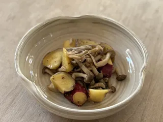 さつまいものデリ風蒸しサラダ とても簡単で ヘルシーです秋にピッタリなさつまいもときのこ 【 材料 】さつまいも 大きいの1本きのこ(舞茸、しめじなど) お好きなだけ美味しい塩 ひとつかみ水 大2●粒マスタード 大1●本みりん 大1.5●三十雑穀みそスープ 大1/2●酒 大1●万能だし粉 小1/