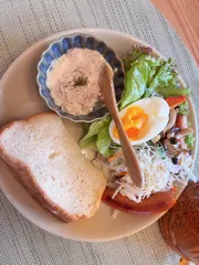朝ごはんʔ•̫͡•ʕ 皆様お久しぶりです☺️ 実は夫にホームベーカリーを購入していただきました🥰🫧 早速朝ごはんにパン焼いてみました🍞 秋の味覚かどうかわからないですが、最近はサラダや味噌汁にきのこを🍄🟫健康にも家計的にも🙆♀️ 季節の変わり目なので皆様体調にお気をつけて🙂&n
