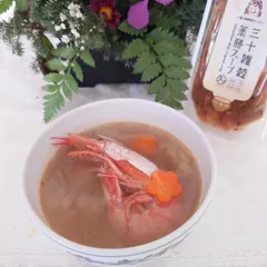 朝ののポカポカスープ 最近朝寒いので、簡単なスープを良く作ります。三十雑穀スープと残り野菜があると美味しいスープが出来てとても便利です。更に、赤海老があると海老の出汁が出てとても美味しくなります。 ■材料・分量レシピの味が再現できるよう、材料(食材や調味料)とその分量を書いてください。・三十雑穀薬膳スープ 大さ