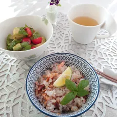 しあわせお昼ご飯 ※まずカテゴリーを選択してから入力をお願いします。カテゴリー選択時および変更時に入力内容が消える場合がございます。 ■材料・分量・2人分レシピの味が再現できるよう、材料(食材や調味料)とその分量を書いてください。・冷凍三十雑穀ごはん 2つ・アトランティックサーモンの燻製 1つ・さしす梅干し
