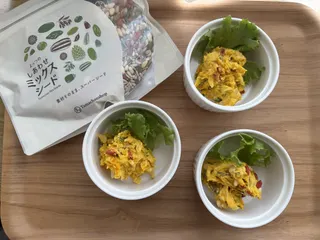 カボチャサラダ ミックスシード入りカボチャサラダ 材料ミックスシード 適量カボチャ1/4玉ねぎ 1/2 今回小さめだったので半分マヨネーズ塩胡椒レモン汁 作り方①カボチャ柔らかくなるまでレンチン玉ねぎ薄切りレンチン30秒②カボチャ潰して玉ねぎ入れる③マヨネーズ塩胡椒レモン汁少し入れて混ぜるミック