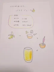 離島に住んでいるのですが…島バナナをたくさんいただいて余ってしまったバナナをジュースにしてみました☺️実物を写真に撮る前にみんな飲んでしまったのでイラストで😂 ■材料・分量・バナナ 2~3本・砂糖 お好みで・牛乳 200~300ml ■作り方①