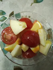 ビタミンサラダ 簡単なので サラダ作って見てね☺️【材料】2〜3人分・ミニトマト 6〜7個・国産レモン(地場産のマイヤーレモン🍋使用 農薬ないの選んでね)1/2個・林檎 1/2個・たまねぎスープ小さじ1・油(玄米油使用)大さじ1・蜂蜜 小さじ2 【作り方】①ドレッシングをたまねぎスープ、油、蜂蜜を合わさて