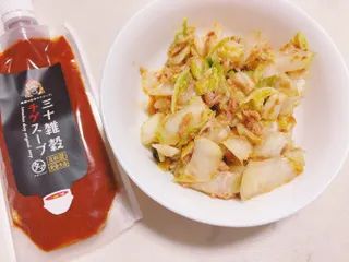 白菜とツナの和えものにプラスで✨ 白菜とツナの和え物に三十雑穀スープのチゲスープを少し加えると、めちゃめちゃ美味しい副菜になりました✨️ピリっとした辛味が食欲をそそります☺️ 鶏がらスープとごま油とすりごまのシンプルな味付けですが、三十雑穀スープを入れるならもう少し塩味を抑えても良かったかも…と反省😂詳しいレシピは次回に…