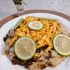 牛肉ときのこの混ぜご飯 ■材料・分量レシピの味が再現できるよう、材料(食材や調味料)とその分量を書いてください。・米 2合・三十雑穀白 大さじ2・水2合分+50cc・自家製干し椎茸、干し木耳 各4個・人参 50g・牛肉切り落とし 150g (調味料)・生姜汁 一欠片分・椎茸戻し汁、酒、醤油 各50cc