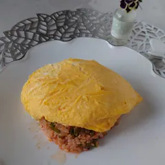 三十雑穀のふわとろオムライス ■材料・分量・2人分レシピの味が再現できるよう、材料(食材や調味料)とその分量を書いてください。・冷凍三十雑穀ごはん 2膳分・鶏もも肉 1/2枚・長ねぎ 1/2本・たまねぎスープ 小さじ1弱・黒粒胡椒 少々・トマトケチャップ 適量3,4回しぼりだす。・たまご 4個・マヨネーズ 大さじ2弱・きび糖 1