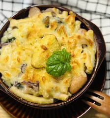 🌿簡単✨白菜グラタン🌿 鍋物が多いこの季節鍋に欠かせない白菜をグラタンにしてみませんか?面倒なホワイトソース作りもワンパン🍳でするので簡単です✨べっぴんはとむぎで香ばしい仕上がりになります😋 🔶材料🔶(2人分)・白菜4枚位(今回は紫白菜使用)しめじ10個位(お好きなキノコ🍄🟫)無塩せきウインナー(鶏肉でも)ほう