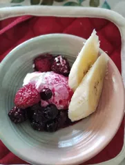 マスカルポーネ鉄分豊富なソース掛け おはようございます。さすがに 葬儀に行く朝は 余り喉に通らないですね。バナナ🍌1本食べましたもう少し食べられそうなので冷凍ブルーベリー🫐等が入ったので、鉄分豊富なソースを作り マスカルポーネにかけ 食べました! 甘酸っぱいのが大好きなので スルスル美味しく頂きました。 材料🍂マスカルポーネ