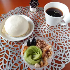 寒いので、ヨーグルトボウルと一緒にあんまん、アマニ油入りのコーヒーです😋 ■材料・分量レシピの味が再現できるよう、材料(食材や調味料)とその分量を書いてください。・いのちのワイン 小さじ1〜2お好みで・べっぴんはとむぎ 適量・プレーンヨーグルト 100g・キウイ 1/2個・プルーン 1つ・